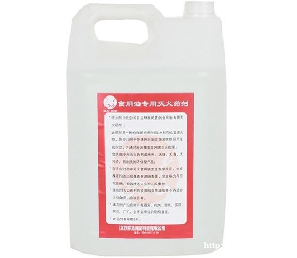 食用油灭火剂是由我司自主研发配置的一种专门用于快速扑灭油脂等易燃物所产生的火灾,并通过泡沫覆盖层巩固灭火成果。此药剂是一种特殊配方低PH的水和有机盐混合物,食用油灭火剂是无色、无味、无毒、无污染、易清洗的环保型产品,在灭火过程中可用于食用油发生化学反应,生成厚厚的泡沫层覆盖在油锅表面,使油锅火与空气隔绝,有效杜绝火灾的二次复燃,接触到灭火药剂的食物和食用油脂将不再适合人们使用,应该丢弃。 联系我时,请说是在季晨网看到的,谢谢!